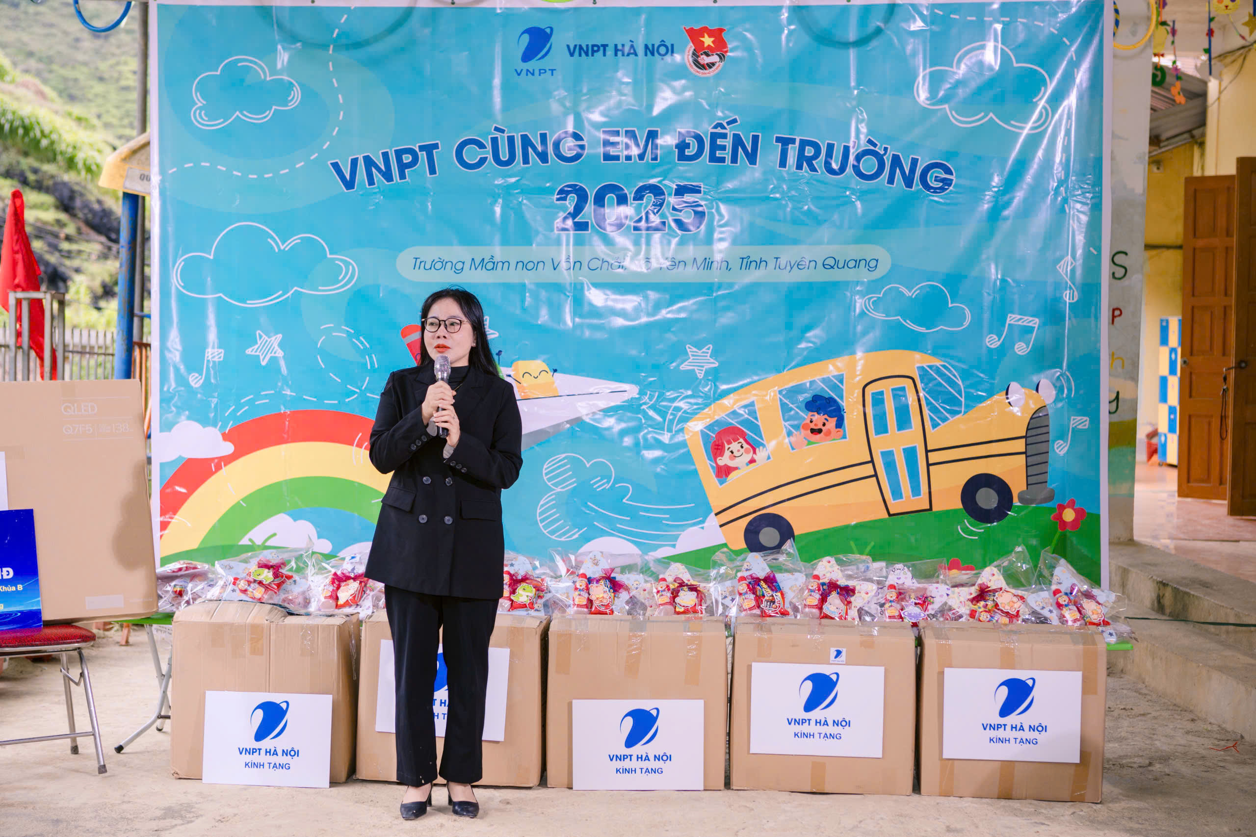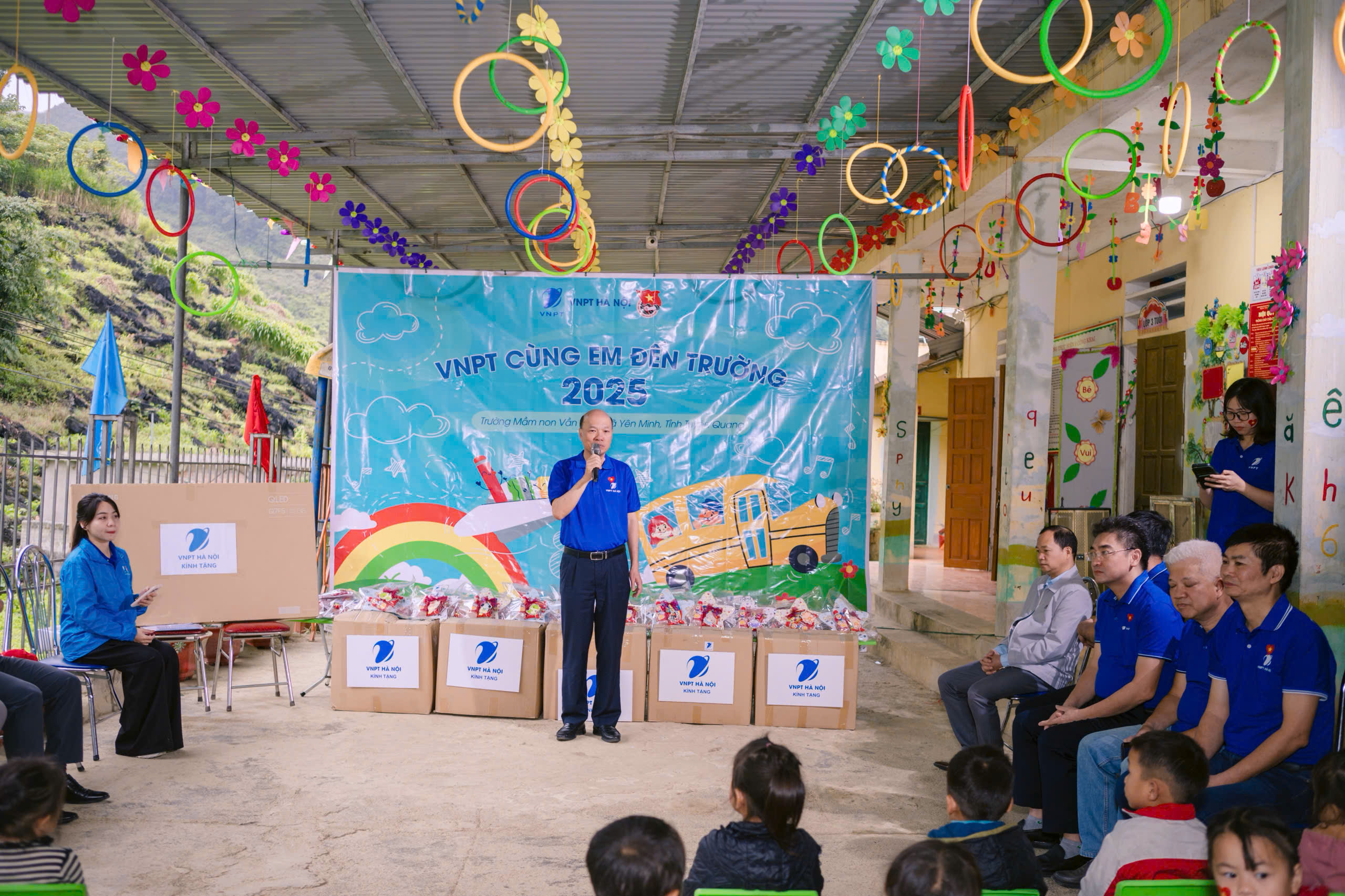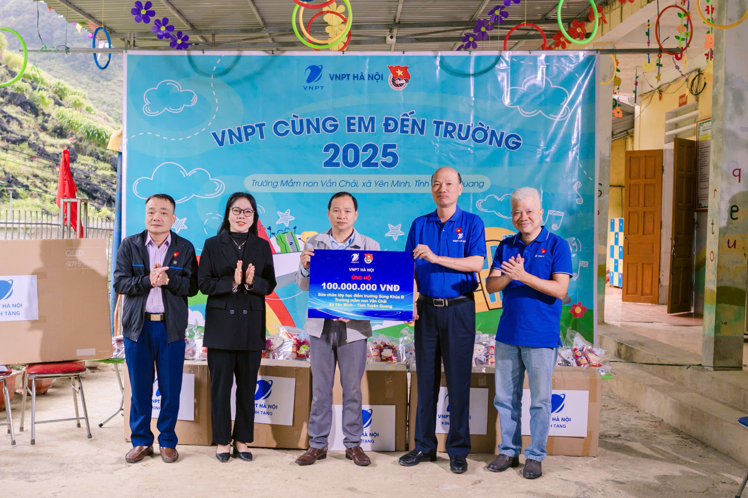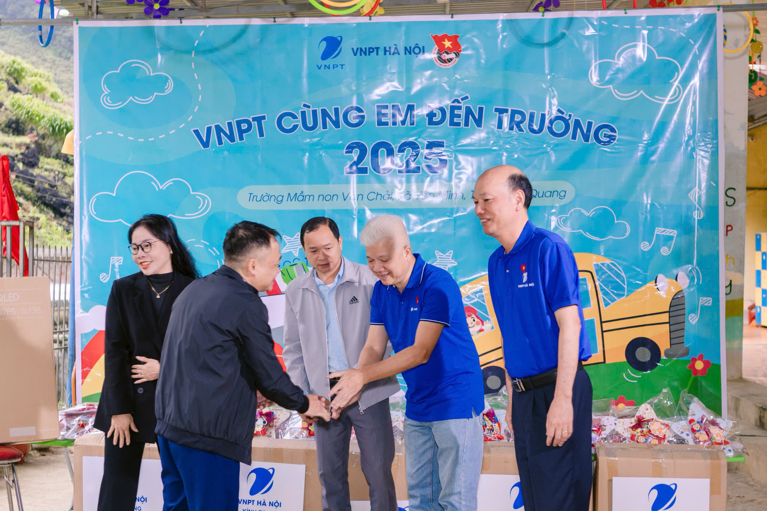 Sáng ngày 9/11, đoàn công tác của Đảng uỷ, Công đoàn và Đoàn Thanh niên VNPT Hà Nội đã đến thăm và trao quà tại Trường Mầm non Vần Chải, xã Yên Minh, tỉnh Tuyên Quang.