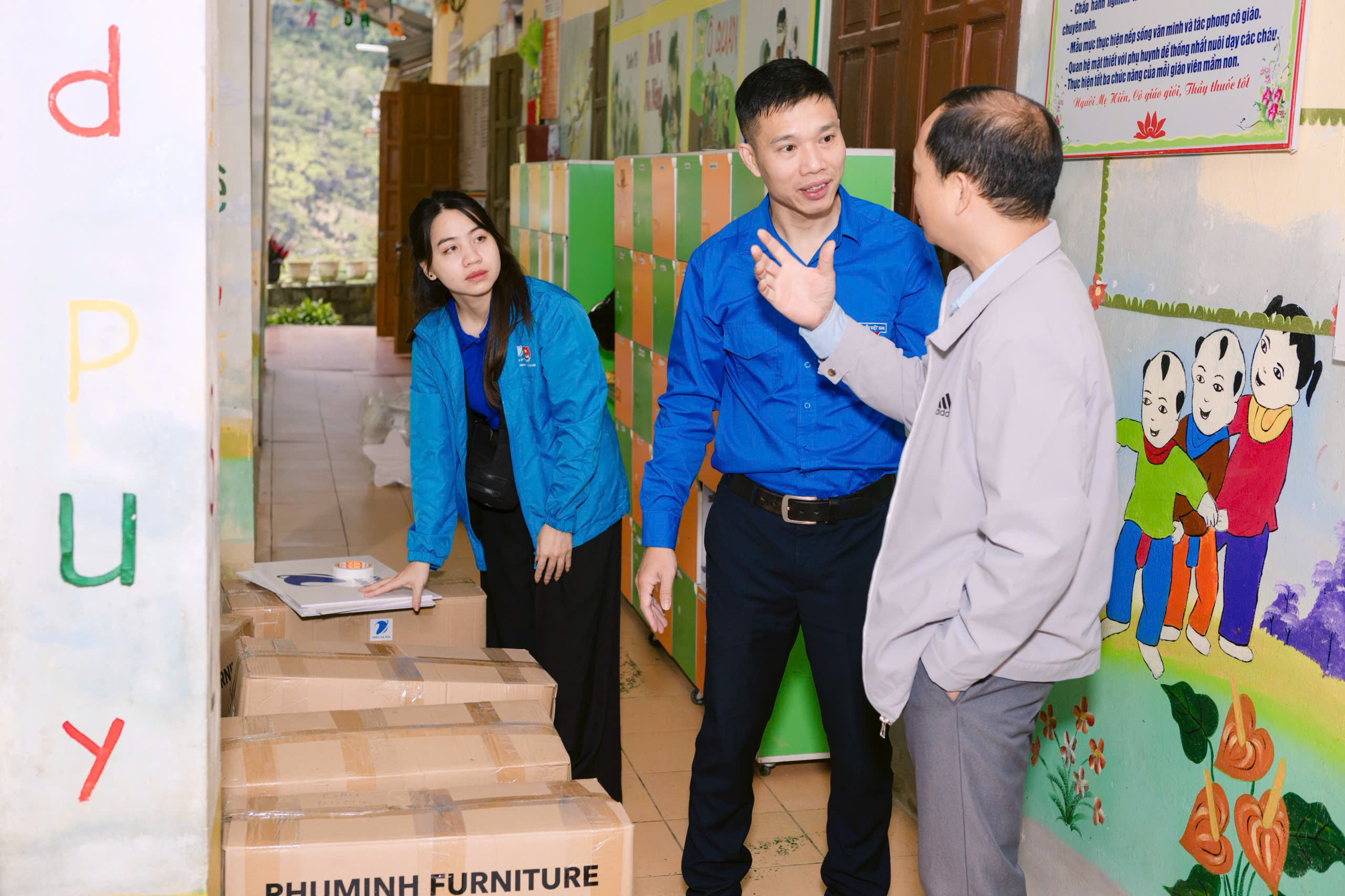 Tại chương trình, đoàn đã trao tặng 100 triệu đồng tiền mặt hỗ trợ sửa chữa phòng học, cùng một chiếc Tivi 55 inch phục vụ công tác giảng dạy và học tập cho các em nhỏ.