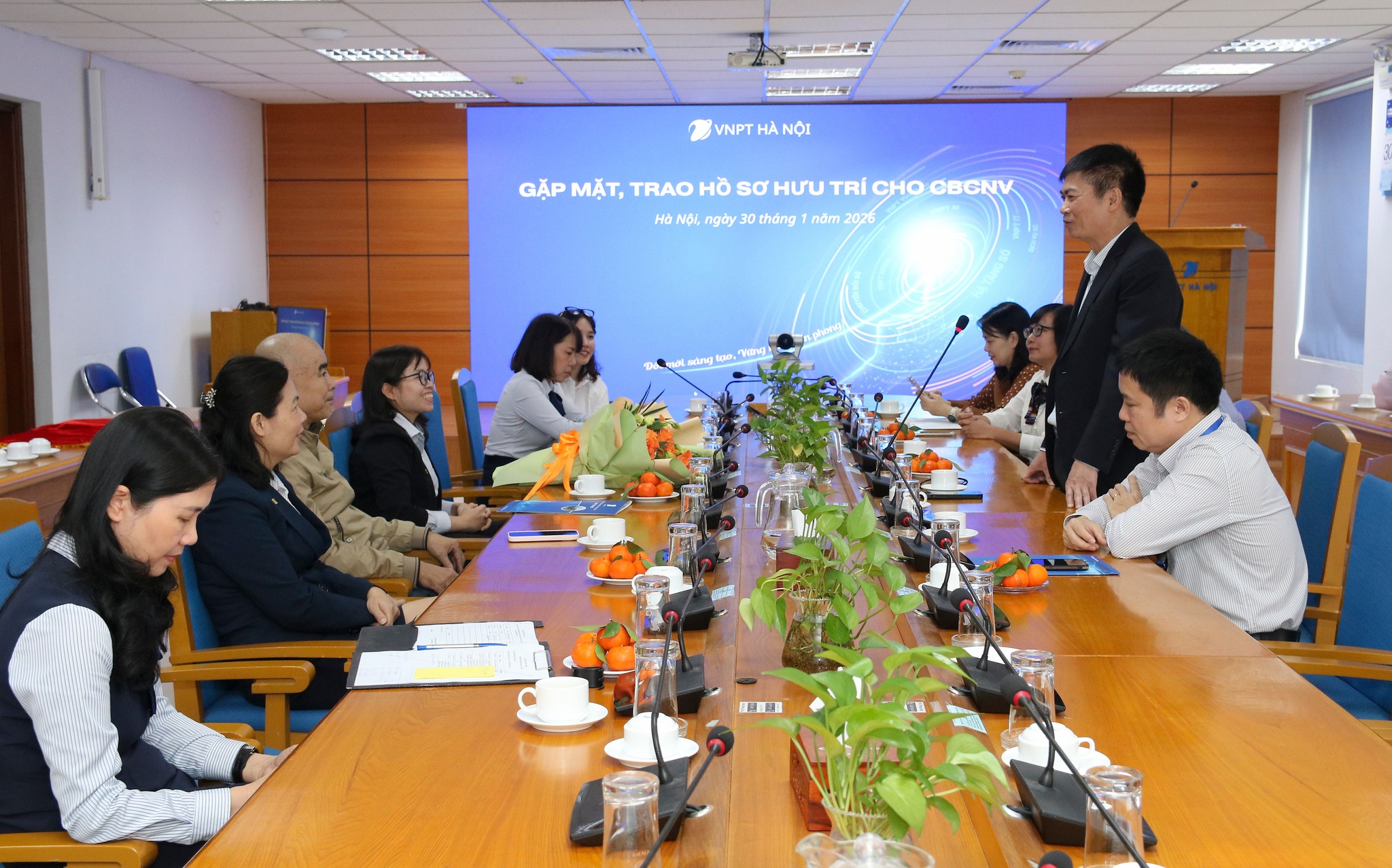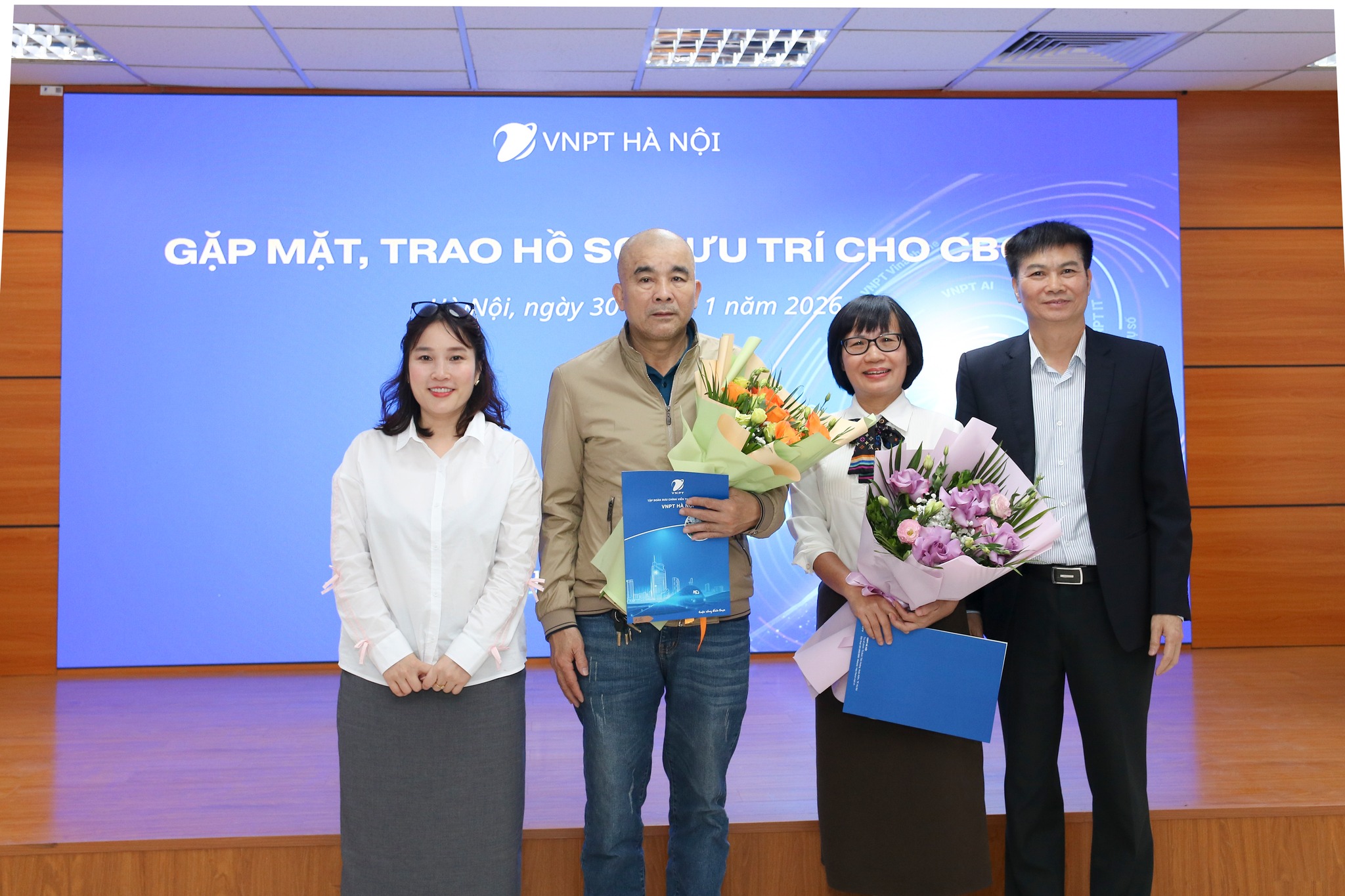 Lãnh đạo Chuyên môn và Công đoàn VNPT Hà Nội trao hồ sơ hưu trí cho CBCNV nghỉ hưu quý 1 năm 2026
